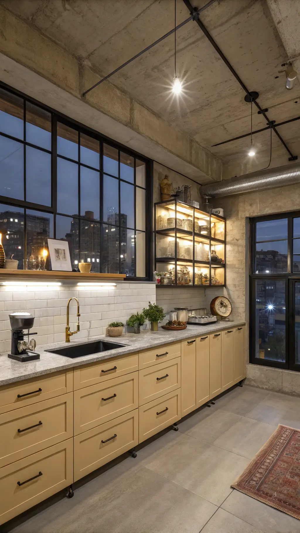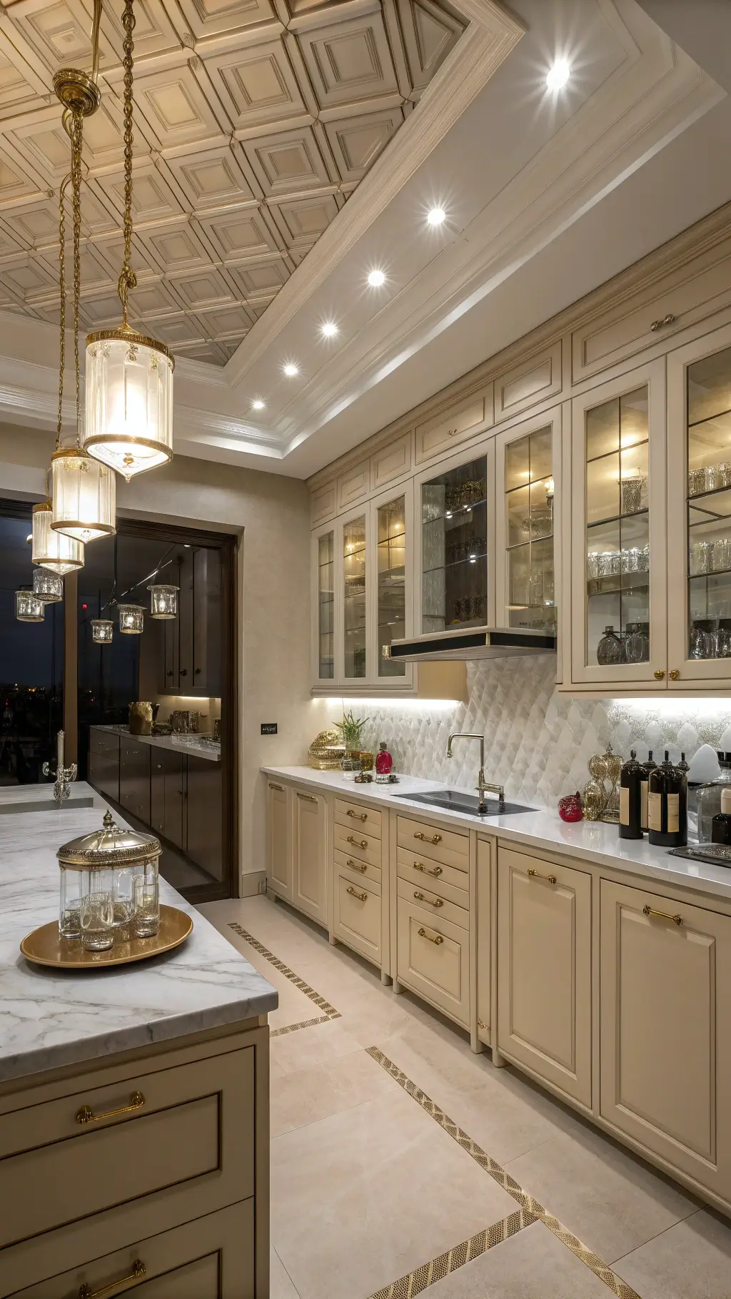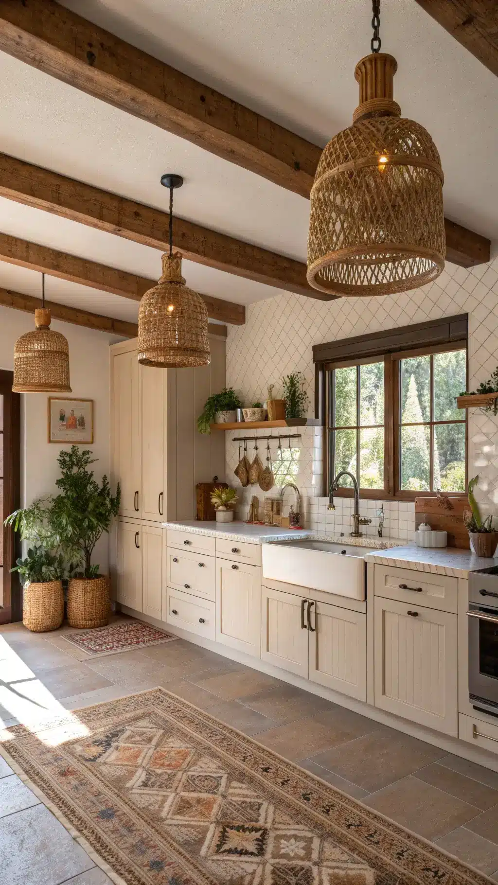 - Play with Contrast: Dark island + beige cabinets = chef’s kiss