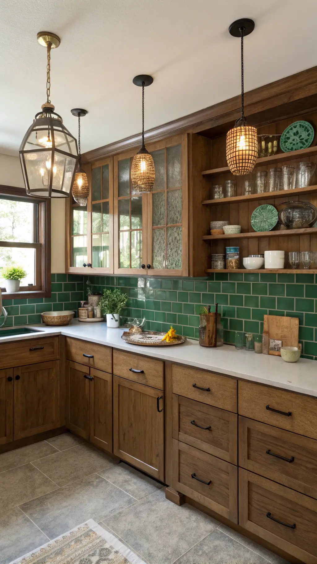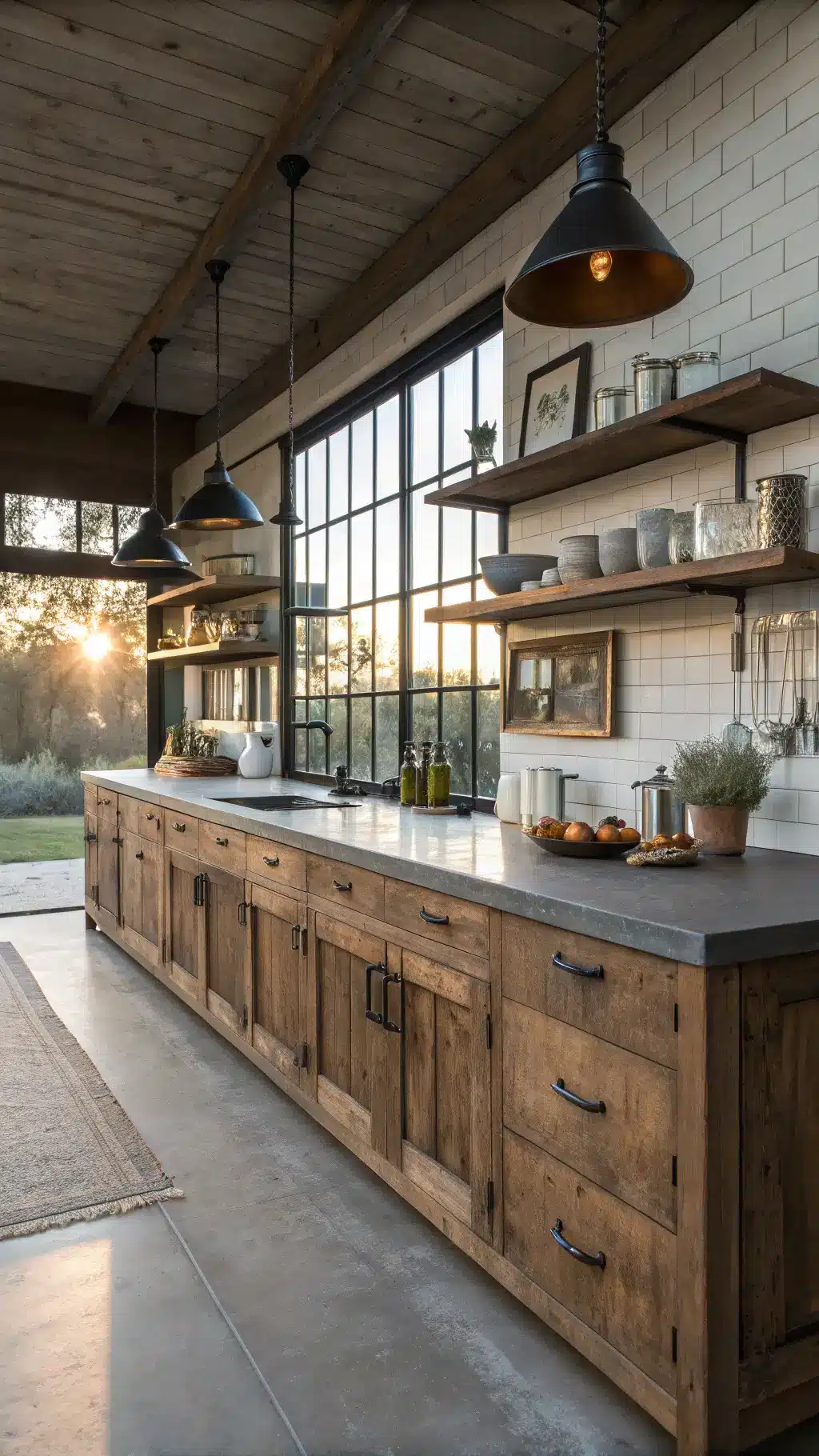 Natural light is gonna be your MVP. Position your cabinets where sunlight can dance across those beautiful wood grains.