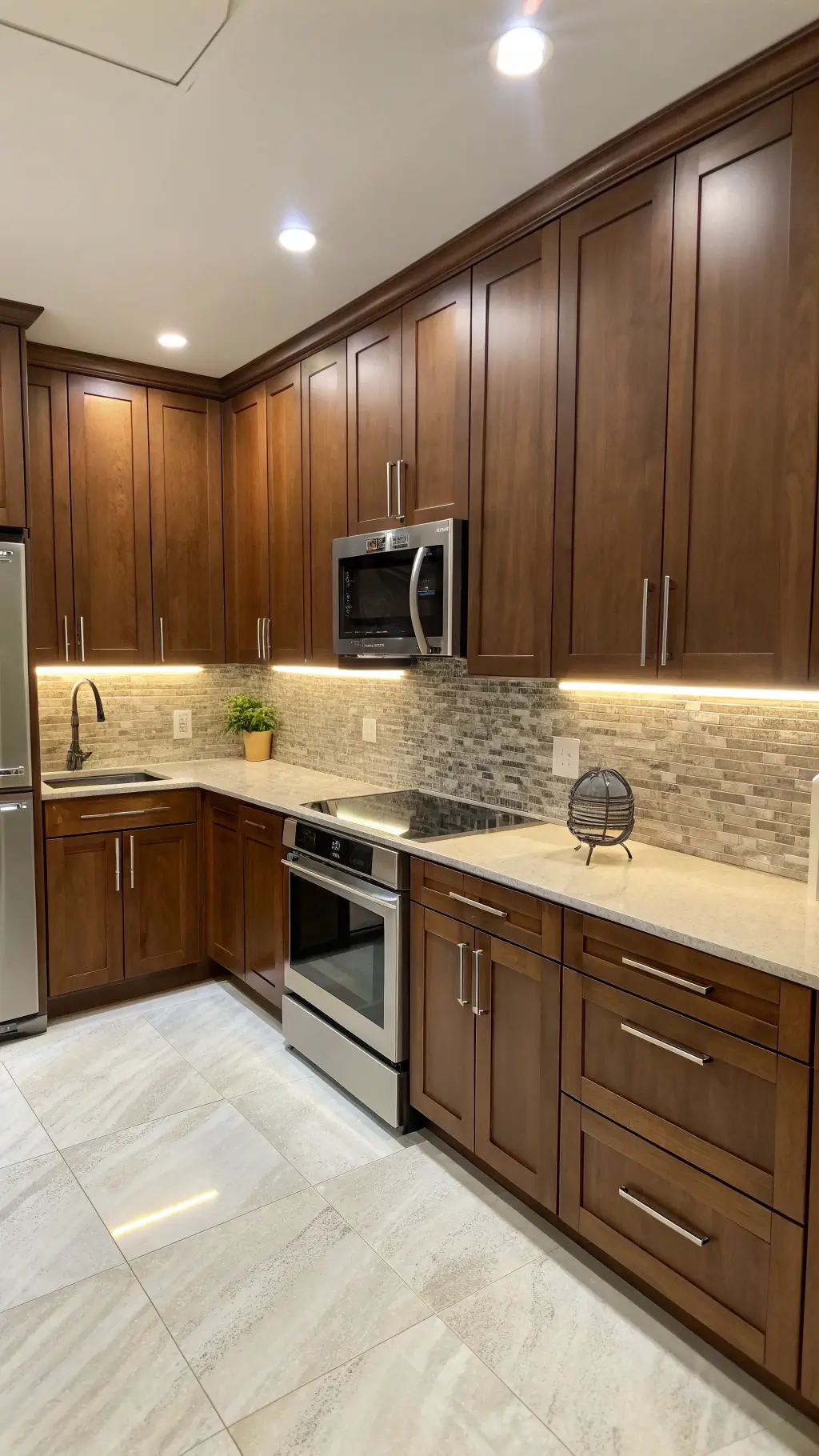 Brown kitchen cabinets aren’t just pretty – they’re smart. They: