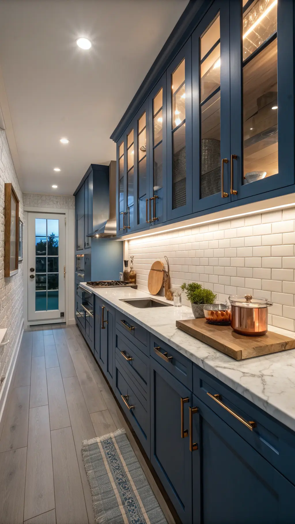Dark blue cabinets aren’t just a design choice—they’re a lifestyle. You’re not just renovating; you’re making a statement.