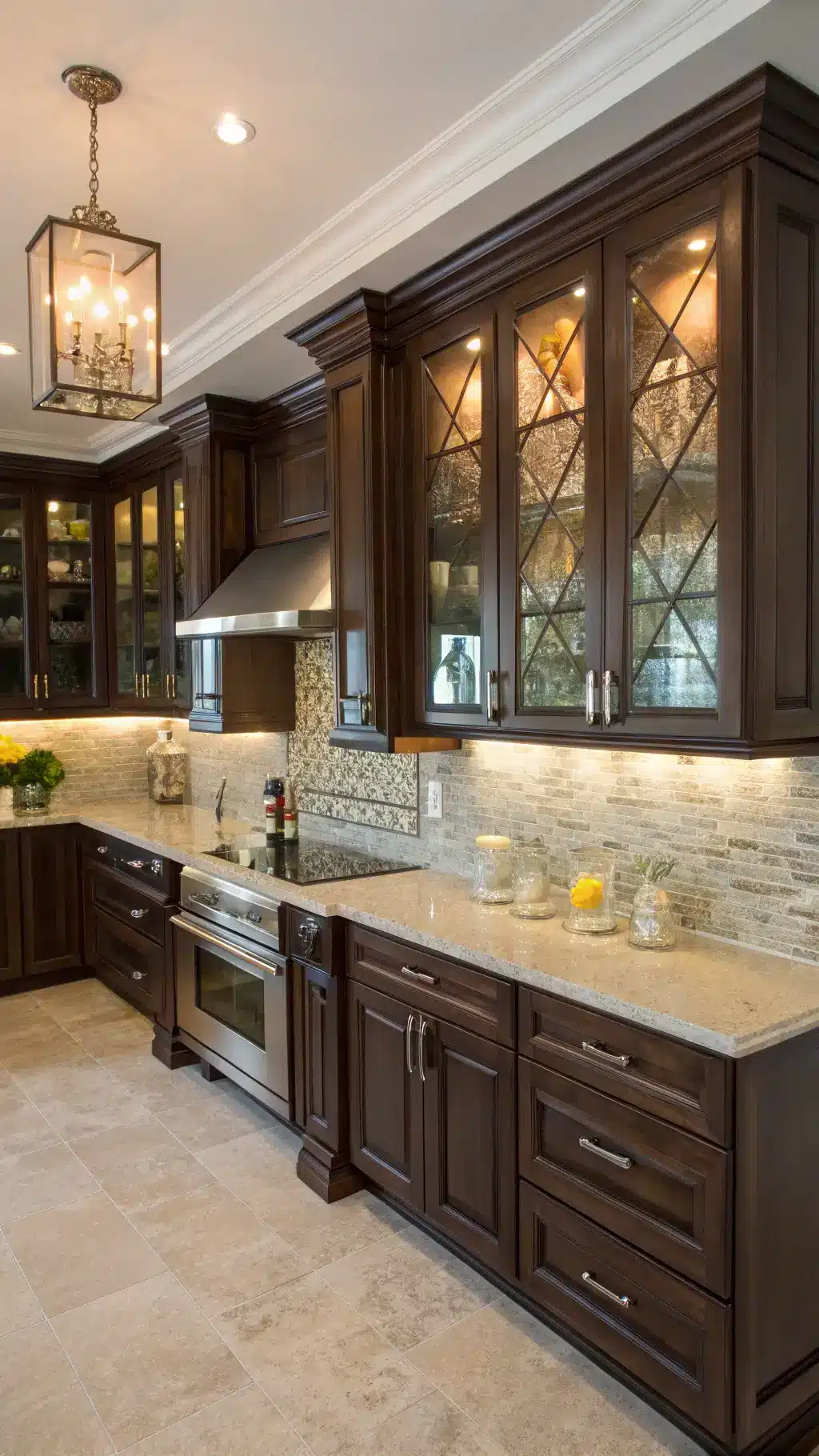 Dark wood cabinets aren’t just a design choice – they’re a statement. Imagine walking into a kitchen that screams luxury, sophistication, and pure design magic. That’s exactly what we’re talking about here!