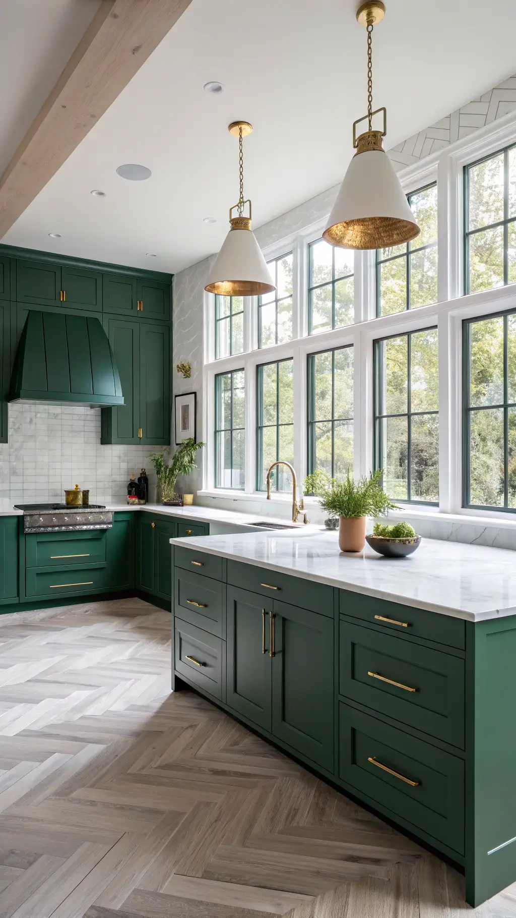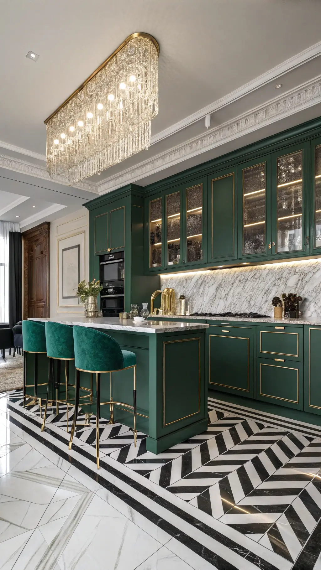 Emerald green kitchen, bold cabinet design, kitchen color trends, luxury kitchen makeover
