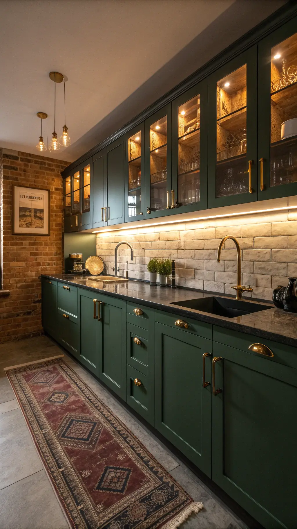 Pro Tip: White walls + emerald cabinets = chef’s kiss. It prevents the space from feeling like a dark cave.