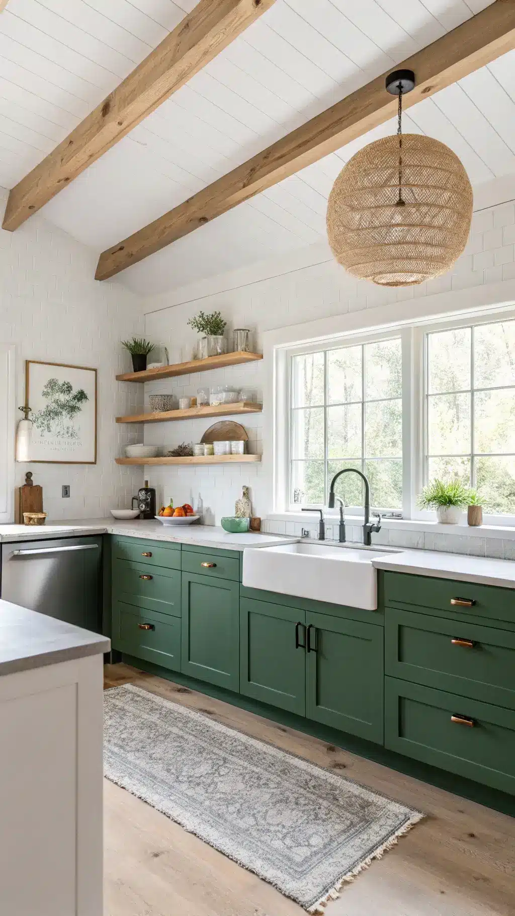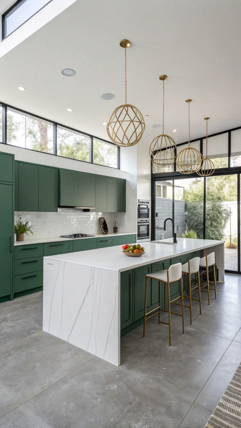Emerald green isn’t just a color – it’s a vibe. Your kitchen will go from “meh” to “magnificent” faster than you can say design goals.