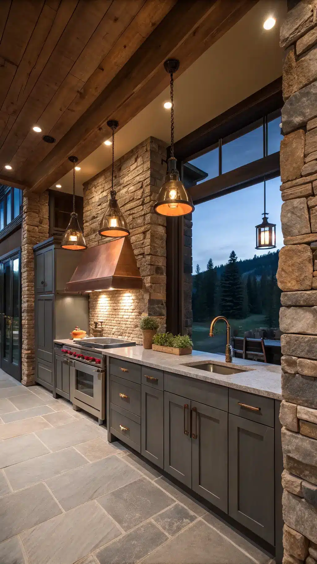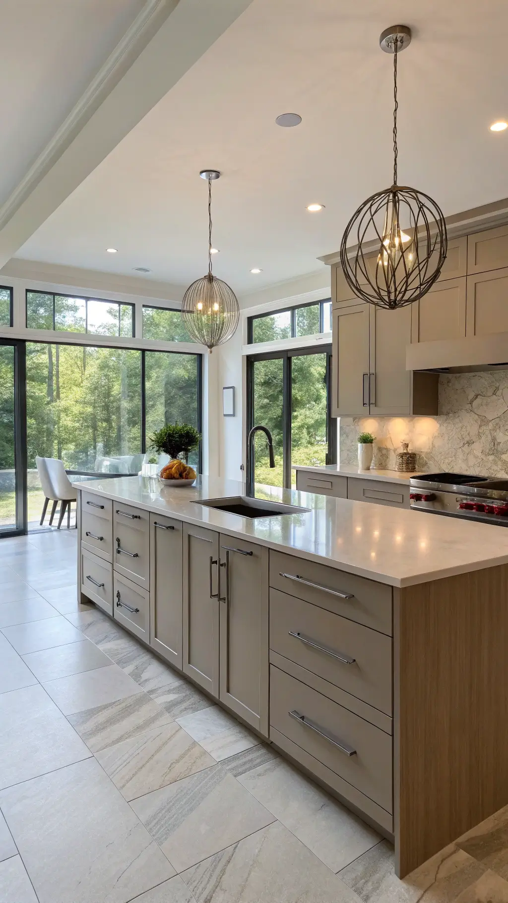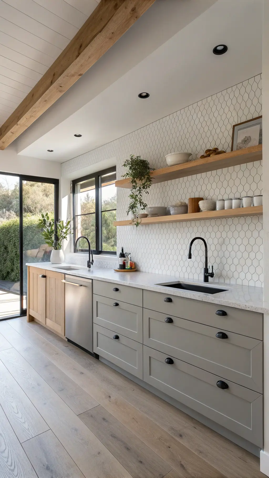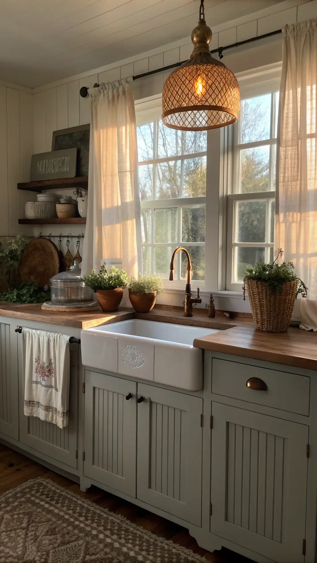 - Boho Gray Kitchen: Add woven lights and colorful textiles