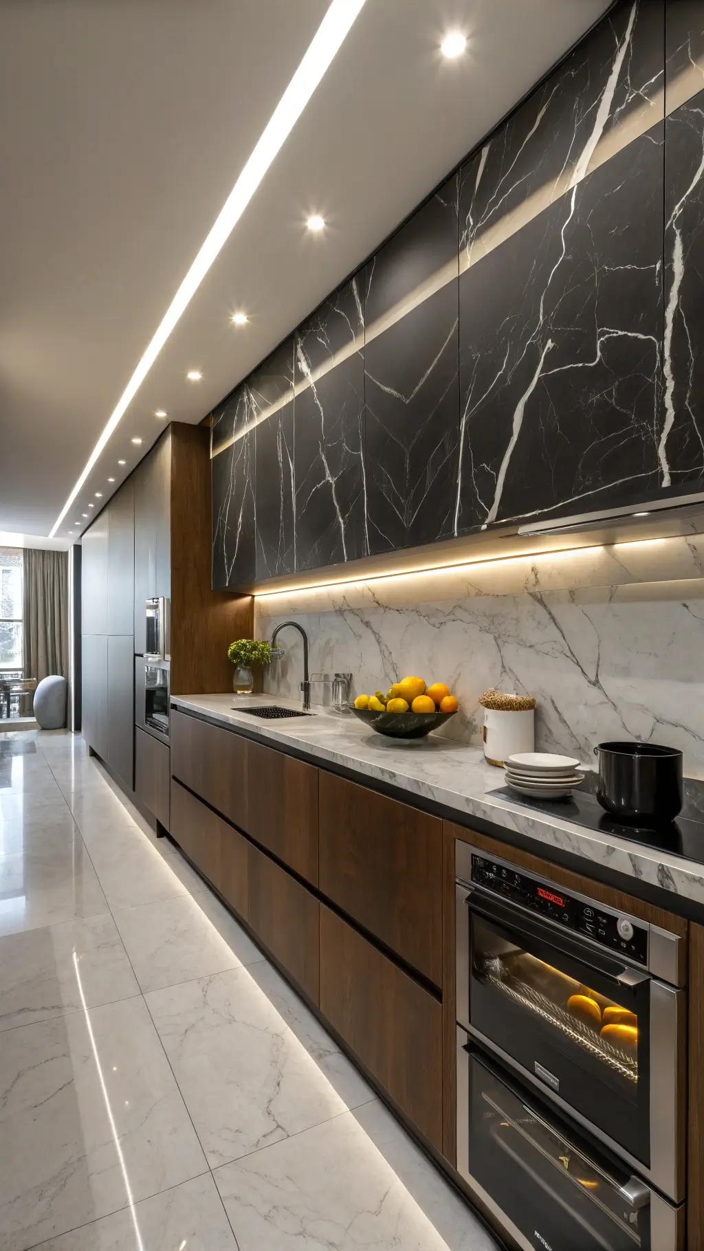 - Use under-cabinet lighting to highlight marble’s natural veining