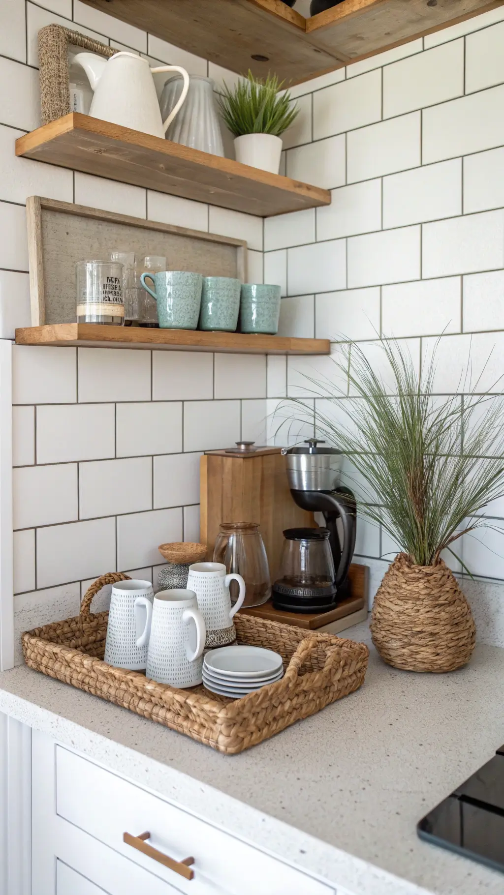 - Open shelving with carefully curated items