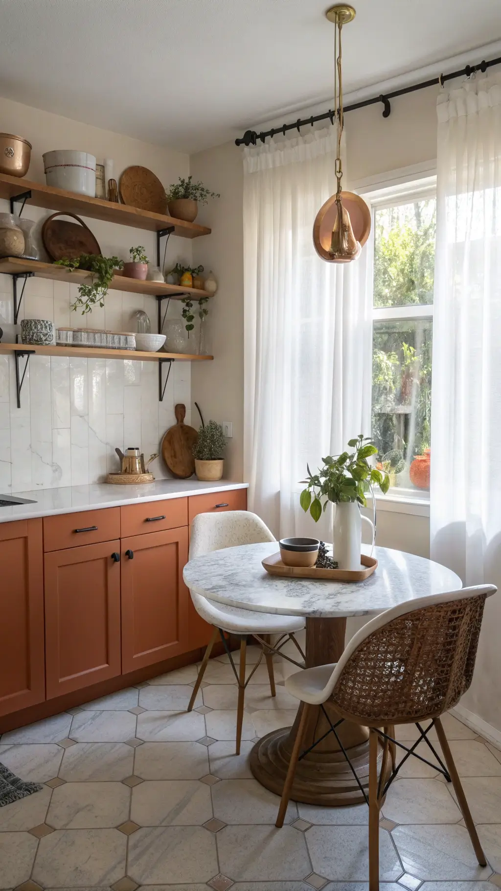 - ❌ Don’t paint ALL cabinets orange if you have a tiny kitchen