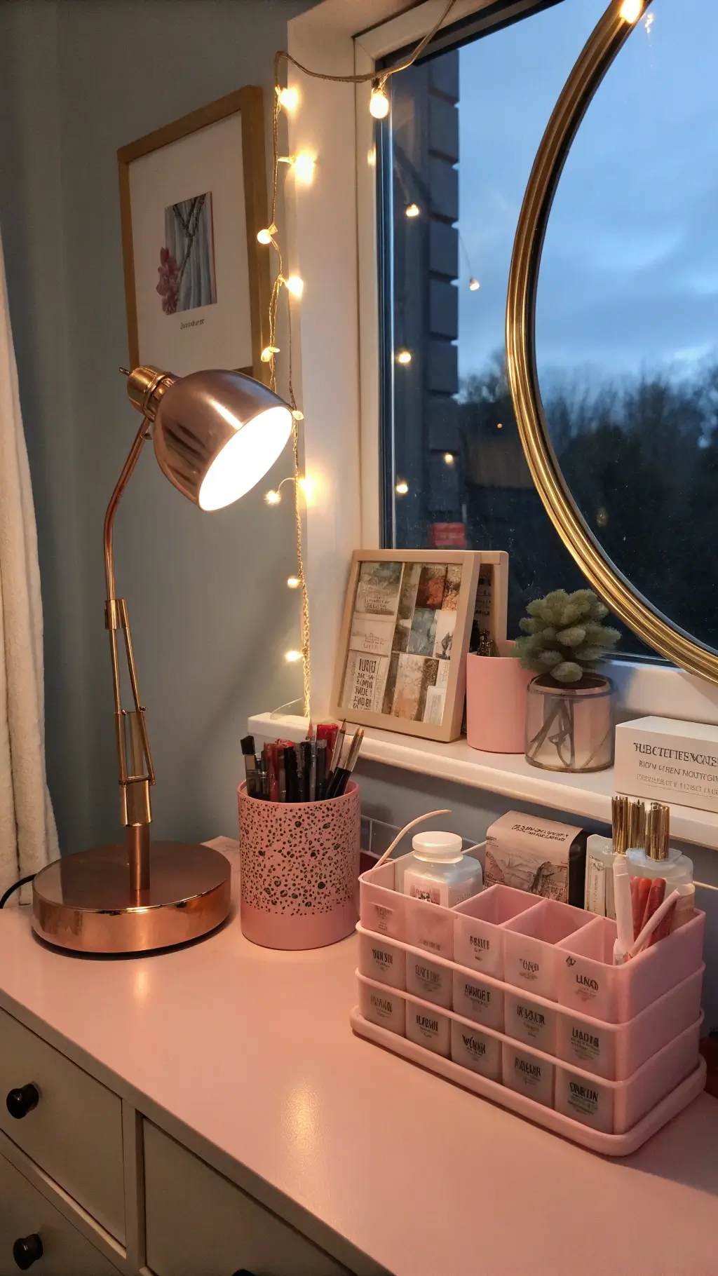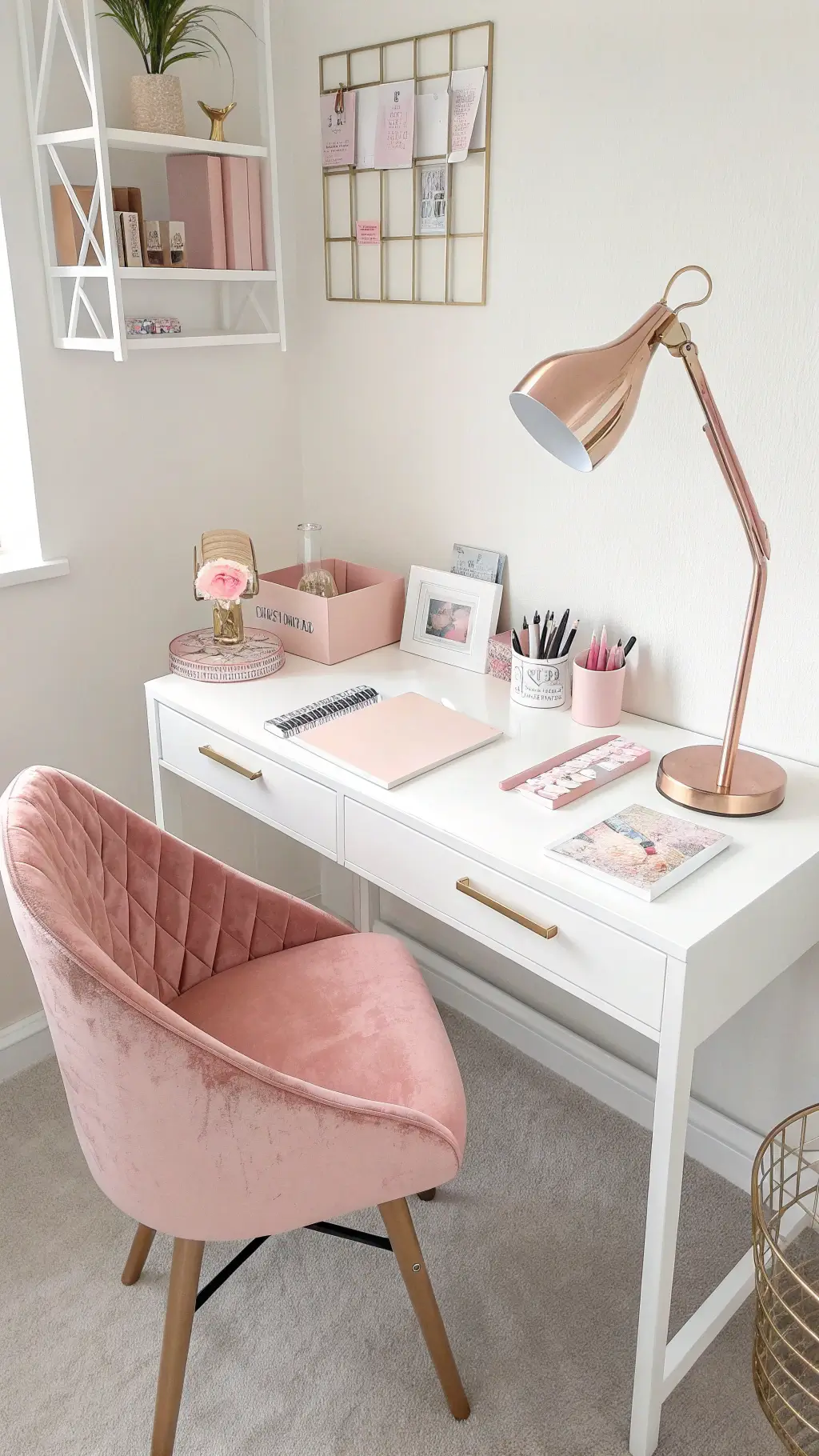 - Study corner with cute pink desk organizer