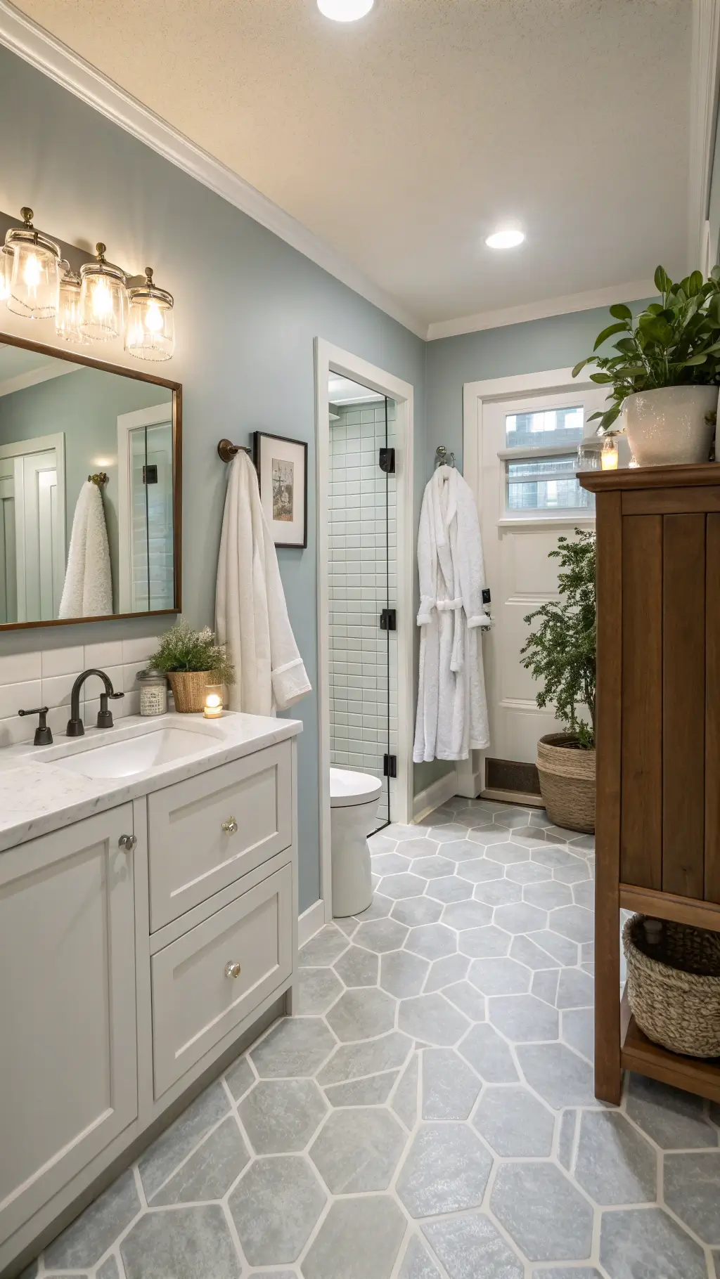 Pro Tip: Light colors are your secret weapon. But not just any light colors – we’re talking strategic neutrals that make your bathroom feel like it’s breathing.